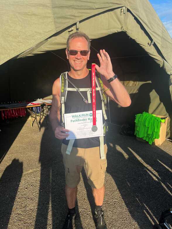 I did… on Saturday 24th June 2023! Forty-six miles over 15 hours, of which 13.25 hours were spent walking, four pounds lighter, 6,900 calories burned, 94,000 steps and 5L of water later… they gave me a medal!